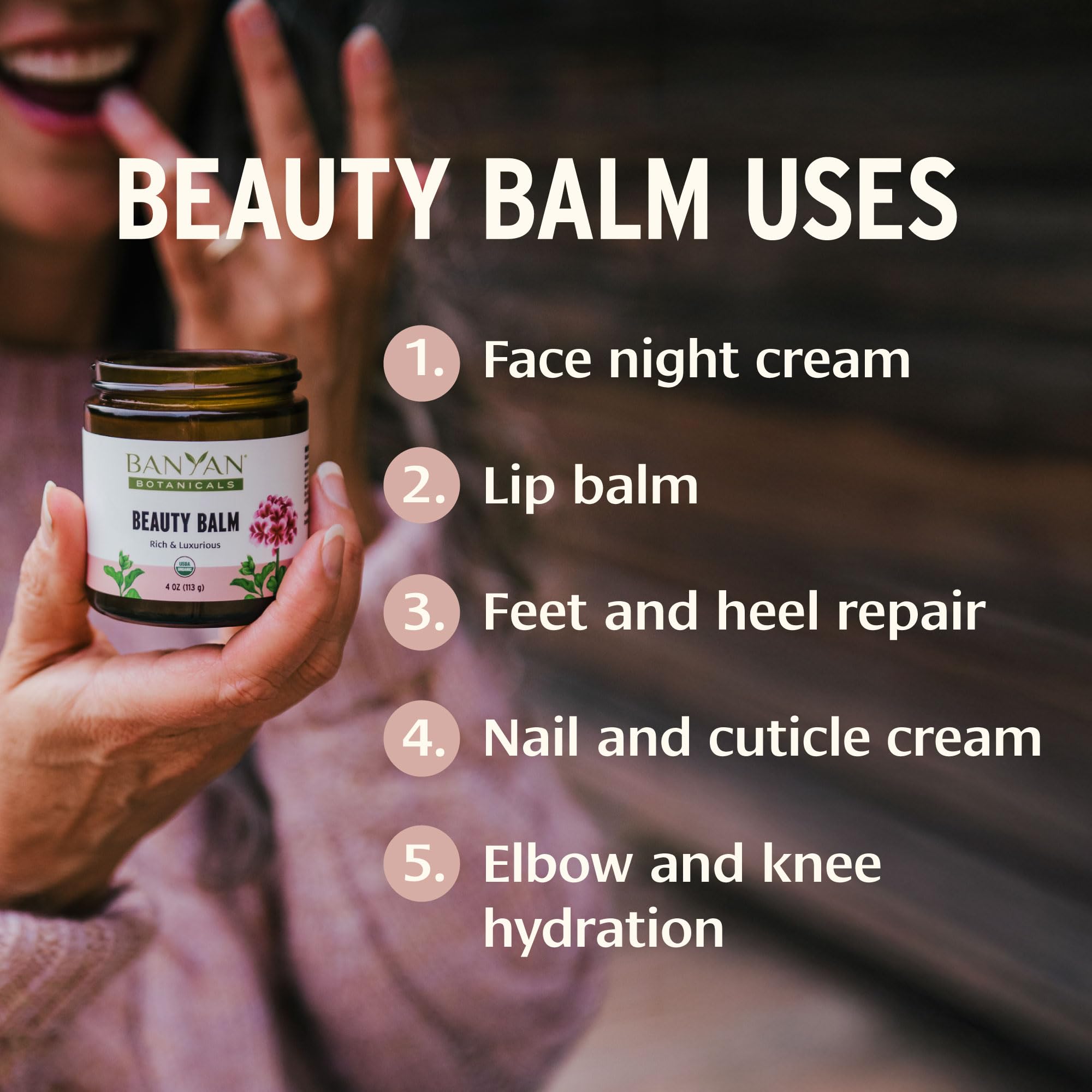- MULTI-PURPOSE BEAUTY RITUAL One jar, endless uses. Use it as a soothing face balm for nighttime recovery, a protective barrier for cracked heels and dry cuticles, or a gentle belly balm for pregnancy. The infusion of Rose Geranium provides a light, floral scent that calms the senses while you nourish your skin.*