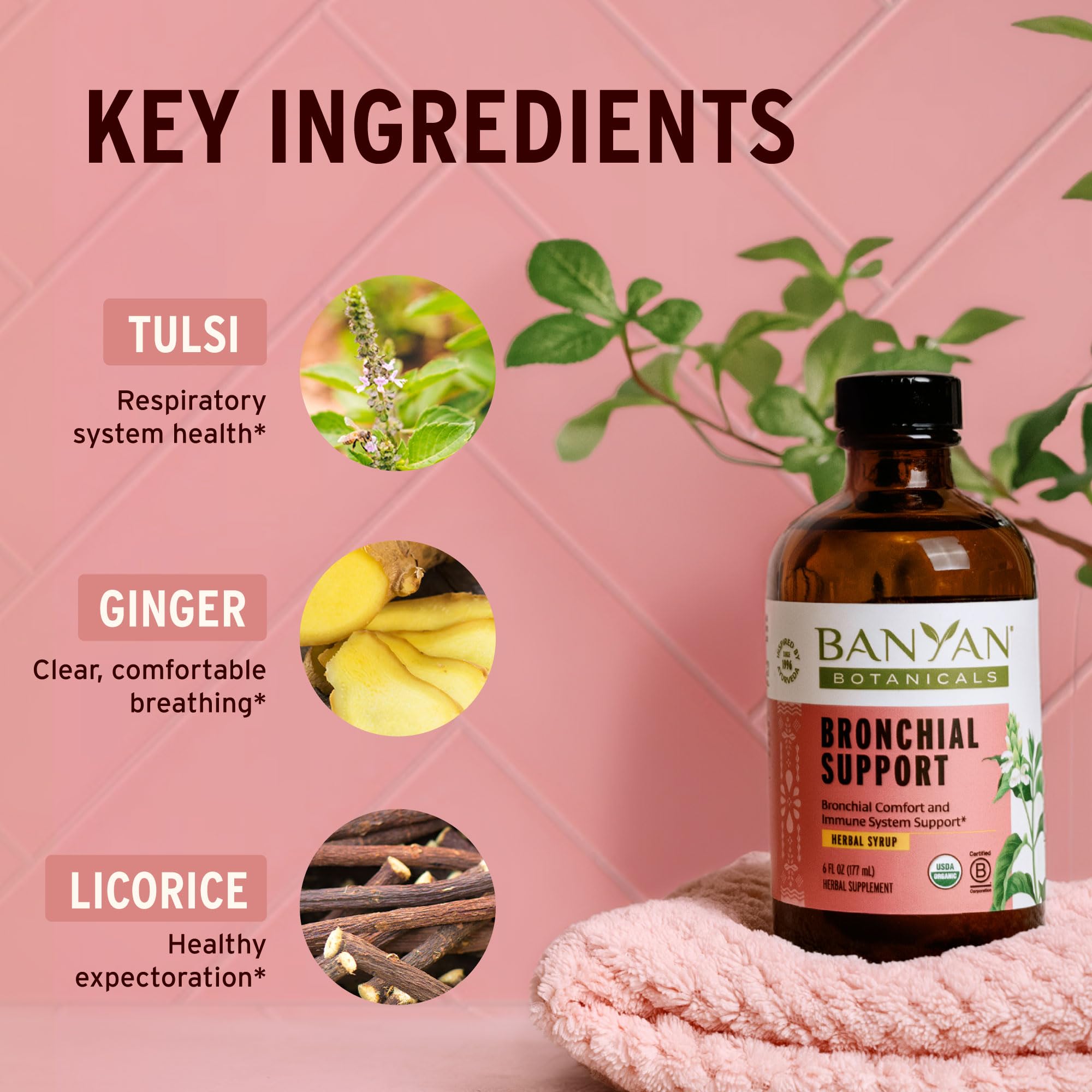 - ALCOHOL-FREE & USDA ORGANIC PURITY Unlike many conventional syrups, Banyan Bronchial Support is 100% alcohol-free and USDA Certified Organic. We use only sustainably sourced herbs that are 3rd-party lab tested for purity, ensuring you get the highest quality respiratory support without unnecessary additives.*