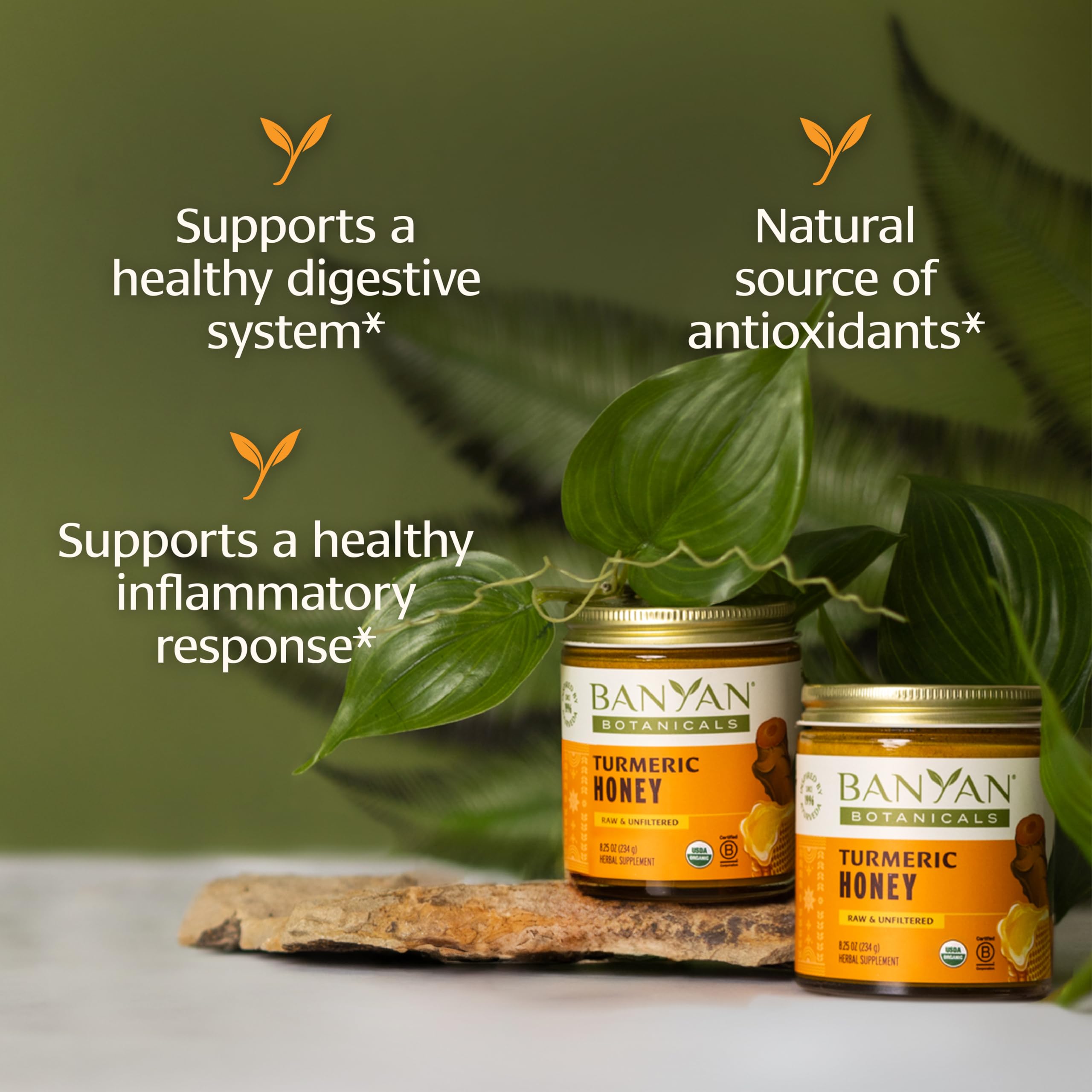 Banyan Botanicals Turmeric Honey – with Turmeric and Ginger – Delicious Superfood Herbal Honey for Adults & Kids – 8.25 oz – Raw & Unfiltered, Pollinator-Friendly, Sustainably Sourced